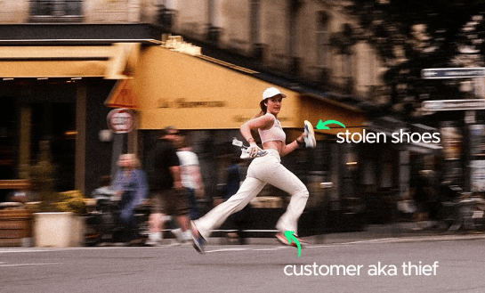 How a running shoe store turned theft into performance marketing — and made runners earn their gear.